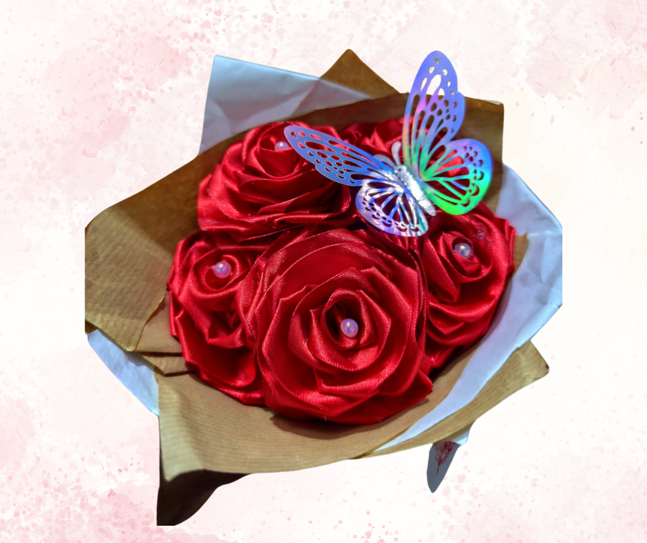 Nuestros ramos de rosas eternas están hechos con flores artificiales de alta calidad que conservan su belleza sin necesidad de agua ni cuidados.